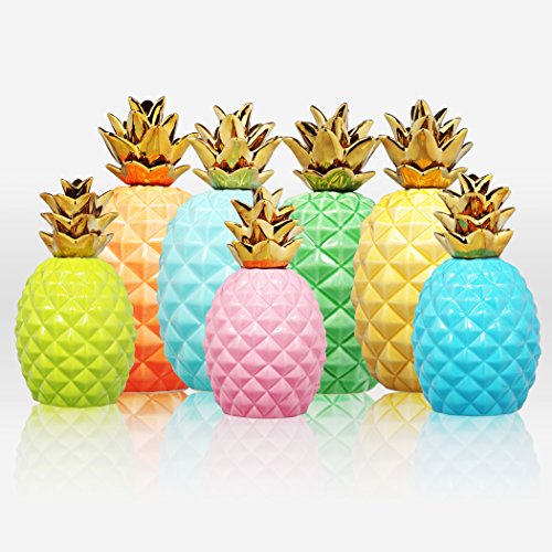 9” Elegant Ceramic Pineapple Centerpiece Decor Yellow with Gold Metallic Crown Figurine Modern Coffee Desk Table Room Kitchen Home Decorative Accessories