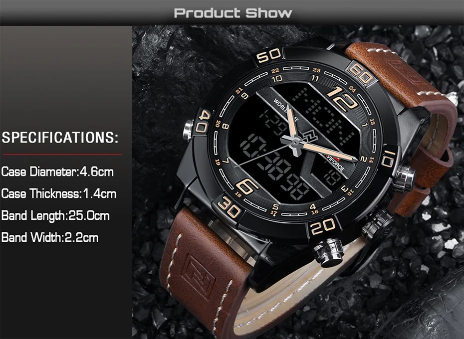 Feature:Water Resistant,LED display,Stop Watch,Complete Calendar,Back Light,Week Display,Shock Resistant,Alarm