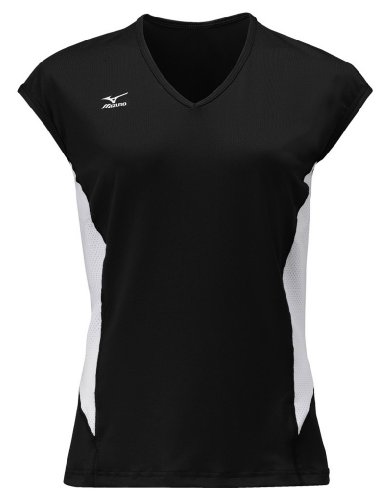 Mizuno Women's Classic Cap Sleeve Volleyball Jersey, Black-White, X-Small