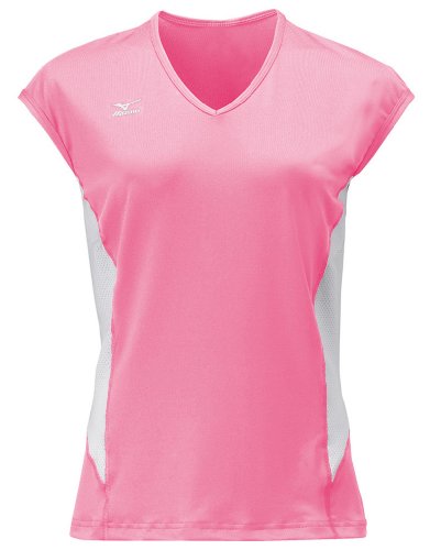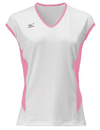 Mizuno Women's Classic Cap Sleeve Volleyball Jersey, White-Pink, X-Large