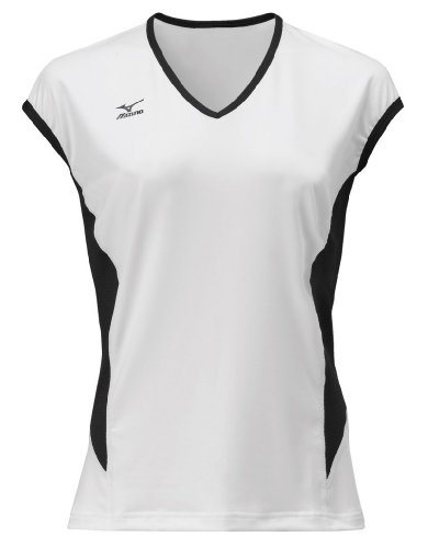 Mizuno Women's Classic Cap Sleeve Volleyball Jersey, White-Black, X-Large