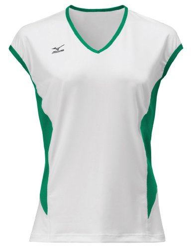 Mizuno Women's Classic Cap Sleeve Volleyball Jersey, White-Forest, Large