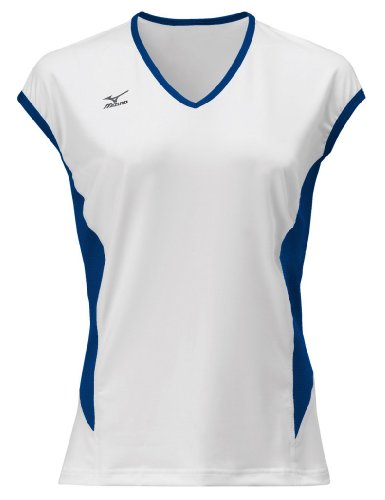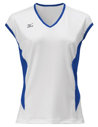 Mizuno Women's Classic Cap Sleeve Volleyball Jersey, White-Royal, Large