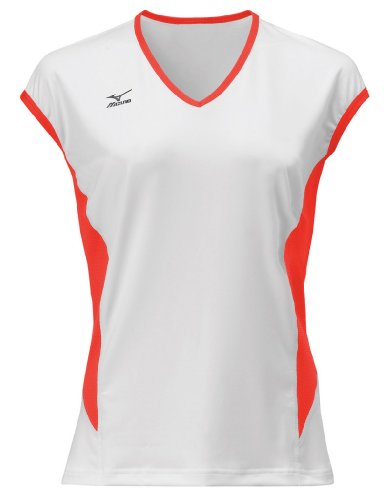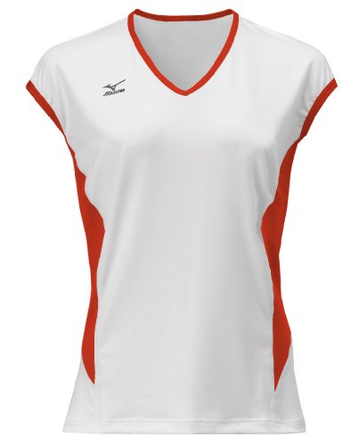 Mizuno Women's Classic Cap Sleeve Volleyball Jersey, White-Red, Large