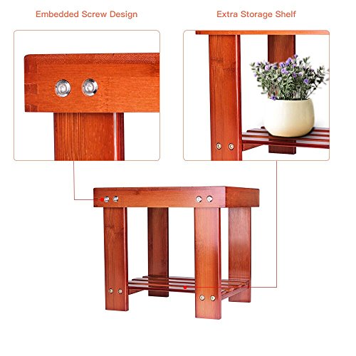 Studio : Lifeasy Publisher : Lifeasy Product Description Our cute,simple stool have a variety of great and practical uses not only for home but also for outdoor activities. New compact design is portable. Our package includes: ① Surface Panel x 1pcs ② Storage Shelf x 1pcs ③ Legs x 4pcs ④ L Shape Wrench x 1pcs ⑤ Spiral Screw x 8pcs ⑥ Screw Nut x 8pcs ⑦ Head Screw x 8pcs ⑧ Installation Instruction x 1 pcs Feature: ? It can help you to get those just out of reach things in the kitchen. ? They are also great for the kids bathroom stools like a toddler step stool. ? There is a storage shelf,you can put thing on it,like shoes etc. ? Freely place it in living room, garden,patio or anywhere in your house. ? Or you can take it out for a camping. ? Put it on the entryway to sit it to exchange your shoes when you go home or out. Specification: Material: Nature Bamboo Size: L x W x H: 28 x 23 x 27 cm /11" x 9" x 10.6"