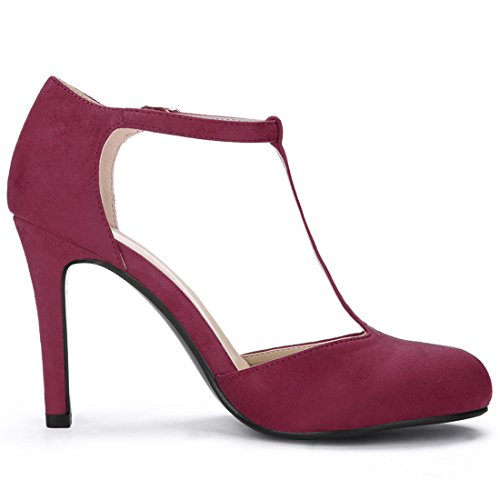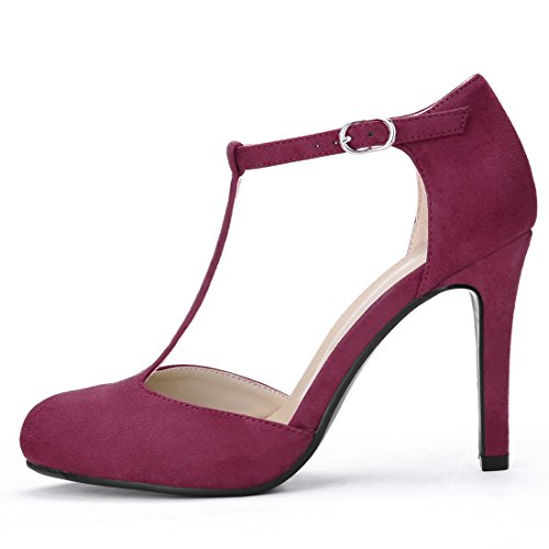 Dress Pumps Rounded Toe T-Strap Stiletto High Heel Vamp: Faux Suede; Outsole: Rubber; Heel: ABS