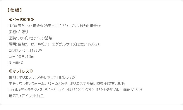 中身:ウレタンフォーム、パームパッド、ポリエステル綿、防虫不織布、羊毛