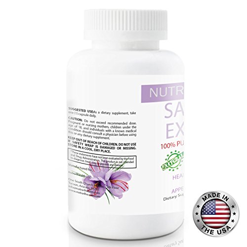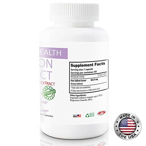 -. Binding : Health and Beauty -. Brand : nutra4health LLC -. EAN : 0638037716542 -. Feature : 100% PURE SAFFRON EXTRACT, 88.25mg per serving, All natural formula / PROMOTES HEALTHY WEIGHT LOSS Helps reduce hunger, May reduce emotional eating & increase Energy / 100% NATURAL SAFFRON CAPSULES, Pure 88.25mg formula produces REAL weight loss results. Stop battling with deP.R.Iving diets, crazy workouts ... / 100% MONEY BACK GUARANTEE - Order Risk Free! 100% SATISFACTION GUARANTEE! If there isn't complete contentment after use, then customers will receive their money back! / NON GMO, GLUTEN FREE, manufactured in the USA at an FDA-inspected and GMP-certified facility -. IsAdultProduct : 0 -. Label : nutra4health LLC -. Manufacturer : nutra4health LLC -. PackageQuantity : 1 -. ProductGroup : Health and Beauty -. ProductTypeName : HEALTH_PERSONAL_CARE -. Publisher : nutra4health LLC -. Studio : nutra4health LLC -. Title : 88.25 mg Saffron Extract Capsules! 100% Natural & Pure , 60 Capsules, NON GMO, GLUTEN FREE, Weight Loss! Suppresses Appetite, Reduces Cravings, MONEY BACK GUARANTEE -. UPC : 638037716542