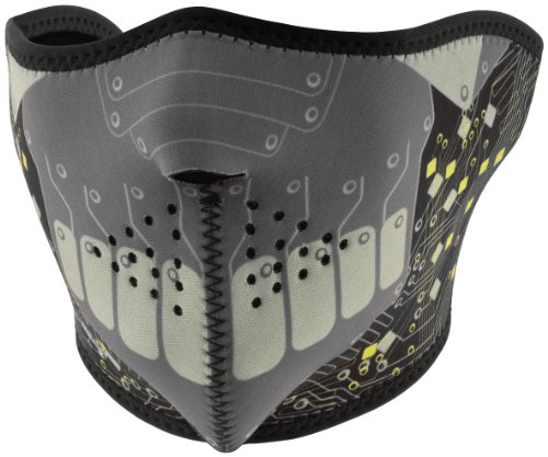 -. Feature : Zan Headgear Robot Neoprene Half Face Mask Street Motorcycle Helmet Accessories for Men / The ZANheadgear Neoprene Half Face Mask features full coverage of nose, chin, and cheeks with stretchy neoprene material that's water resistant and provides warmth / Its bound nylon edges offers added comfort and durability, while the hook and loop closure ensures great fit / Reversible to black material / One size fits most, 70% Neoprene, 30% Polyester, Robot design