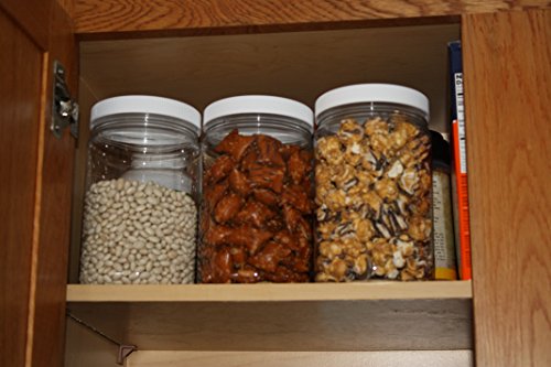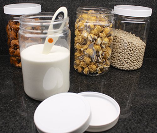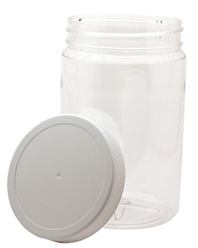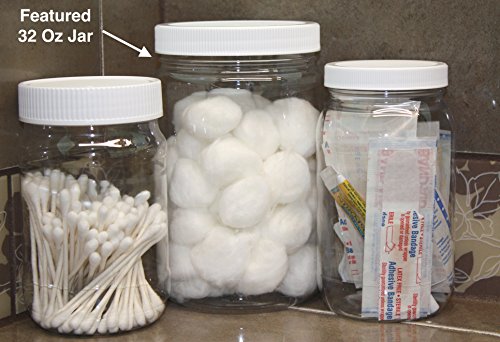 REFILLABLE PLASTIC JARS WITH WHITE LIDS - MADE IN USA - 6-1/8" by 3-5/8" Empty Plastic Canisters, 32 oz, 1 Quart 89-400 PET with Ribbed SureSeal Foam Lined Lids - As many uses for these handy jars as you can think of... and you can use them over and over!