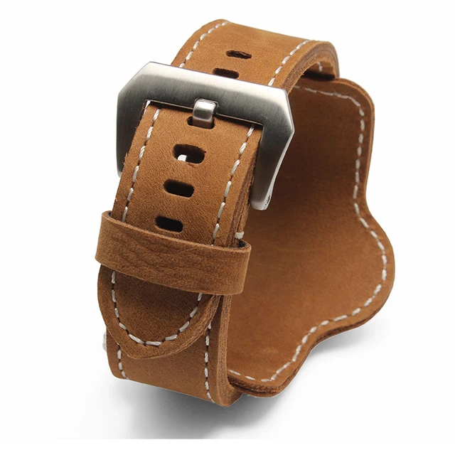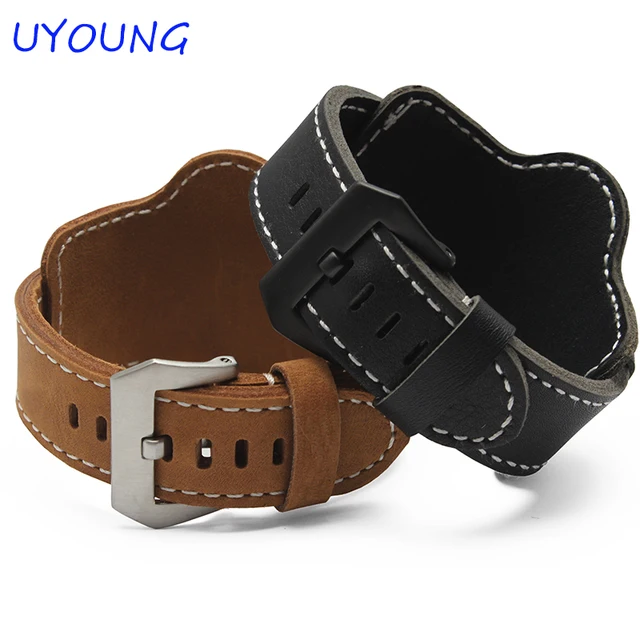 22 미리메터 24 미리메터 품질 커프 팔찌 스트랩 가죽 손목 시계 검은 갈색 장식 스타일의 벨트 망