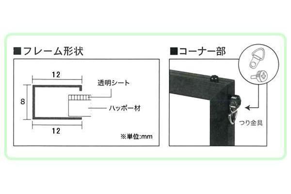 ポスター、POP、写真、版画等、幅広く利用できる、軽くて丈夫なアルミフレームです。