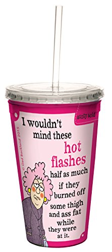 Hilarious Aunty Acid Travel Cup with Reusable Straw, 16-Ounce, Hot Flashes CC98396 - Funny Over the Hill Old Age Gift for Women - Tree-Free Greetings