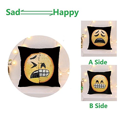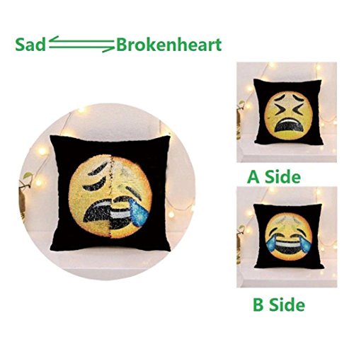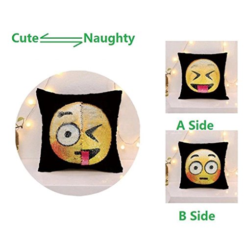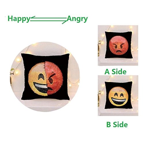 (TrimakeShop)/Accessories/Luggage, Bags Travel/DIRECT FROM USA/TrimakeShop Emoji Reversible Sequins Changeable Face Cushion Cover Home Decor 16 x 16