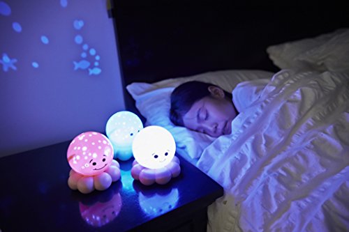 Our bubbly octupus nightlight is the compact answer to finding a restful night's sleep on the road. The Twinkles to Go Octo projects stars or images of his underwater buddies to help comfort children to sleep, whether it is in the backseat, or the hotel suite.