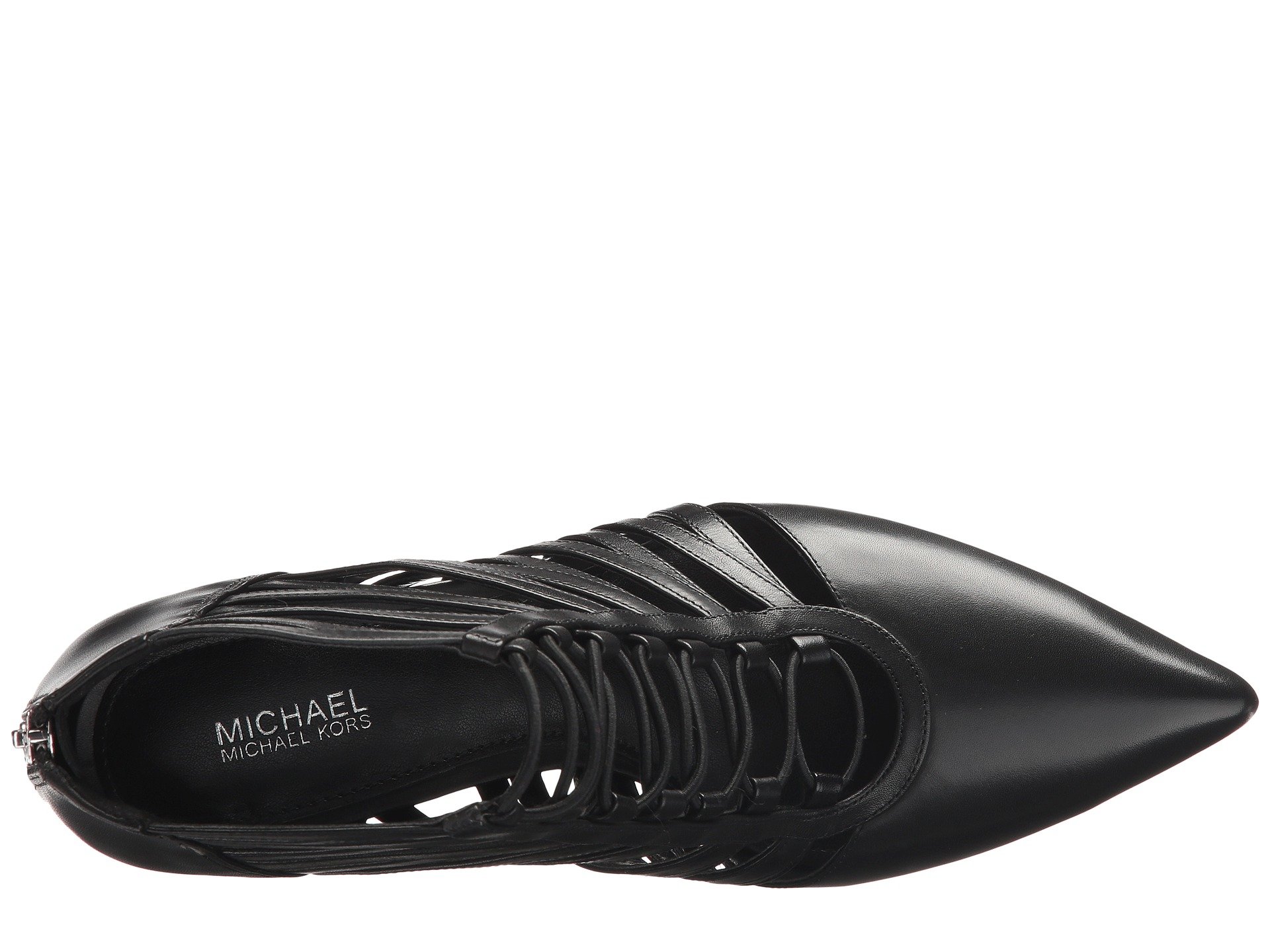 | Product Information SKU: #9032931You'll love the MICHAEL Michael Kors? Clarissa Pump bootie!Soft leather upper with back zipper closure.Soft man-made lining.Lightly padded footbed for added comfort.Textured synthetic outsole.Imported.Product measurements were taken using size 8.5, width M. Please note that measurements may vary by size.Weight of footwear is based on a single item, not a pair.Measurements: Heel Height: 3 1?4 in Weight: 10 oz |