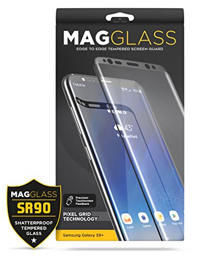 -. Title : Samsung Galaxy S9 Plus Tempered Glass Screen Protector - Curved MagGlass (SR90 Scratch-proof / Shatterproof) ) Full Lens & Sensor Coverage Screen Guard (includes easy-on applicator)