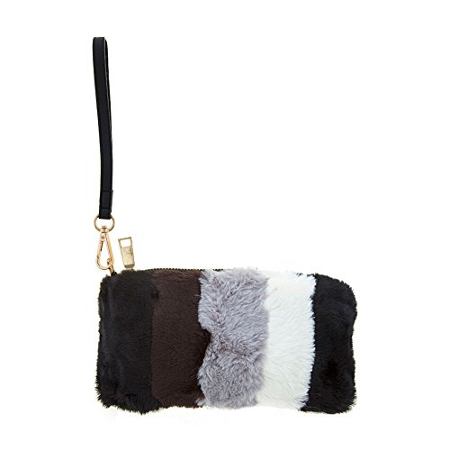 Faux Fur Wristlet: Black, Espresso, Silver & Ivory