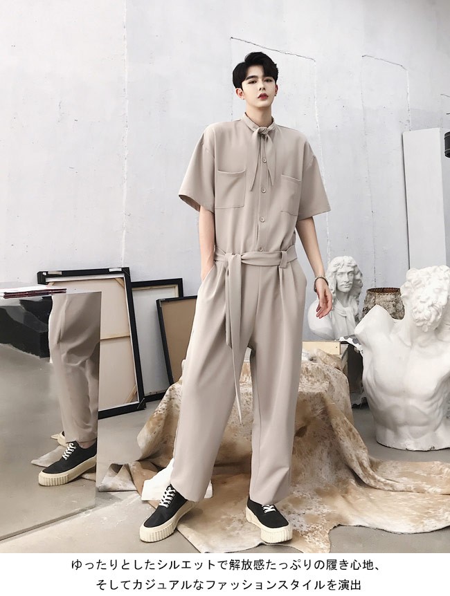 つなぎ メンズ 半袖 ゆったり オーバーオール ロングパンツ 男性用 コンビネゾン 九分丈パンツ ベルト付き オールインワン 薄手 レトロメンズ用のつなぎが登場ゆったりとしたシルエットで解放感たっぷりの履き心地、そしてカジュアルなファッションスタイルを演出襟元はスカーフ付きで遊び心満載のアクセントを付けるレトロな佇まいが漂うデザインは最大のポイントウエスト部分はベルト付きでサイズ感も結び方も調整できる着まわしの効くカラバリが用意され、人選ばずに着こなせる一枚カラー:ベージュ ブラック素材 ポリエステルサイズ(cm) M L XL 2XLM バスト106 肩幅58 ウエスト100 ワタリ70 総丈140L バスト110 肩幅60 ウエスト104 ワタリ72 総丈143XL バスト114 肩幅62 ウエスト108 ワタリ74 総丈1462XL バスト118 肩幅64 ウエスト112 ワタリ76 総丈149ご注意:※サイズは平置きサイズです。素人採寸ですので、若干の誤差がございます、ご了承ください。