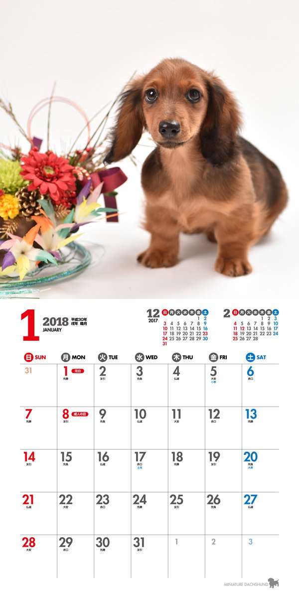 A calendar of Dachshund proud of immovable popularity with a unique form of short and short legs and a bright personality.