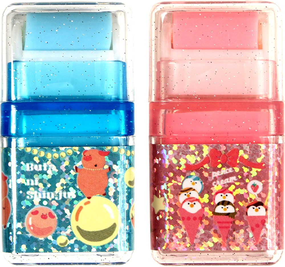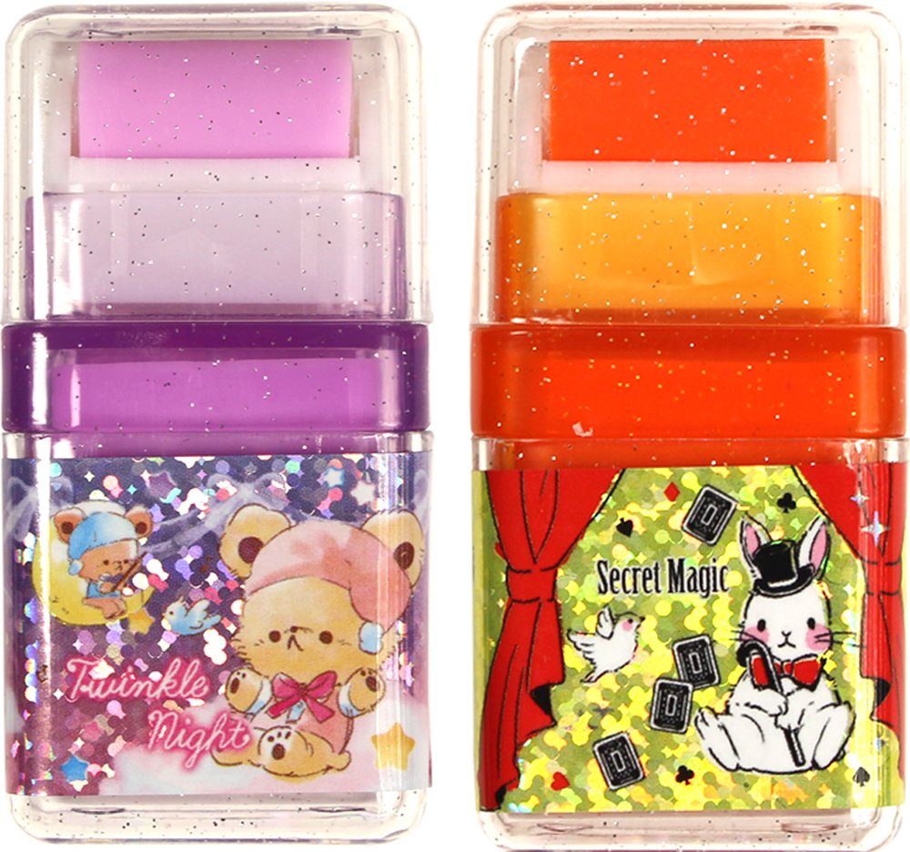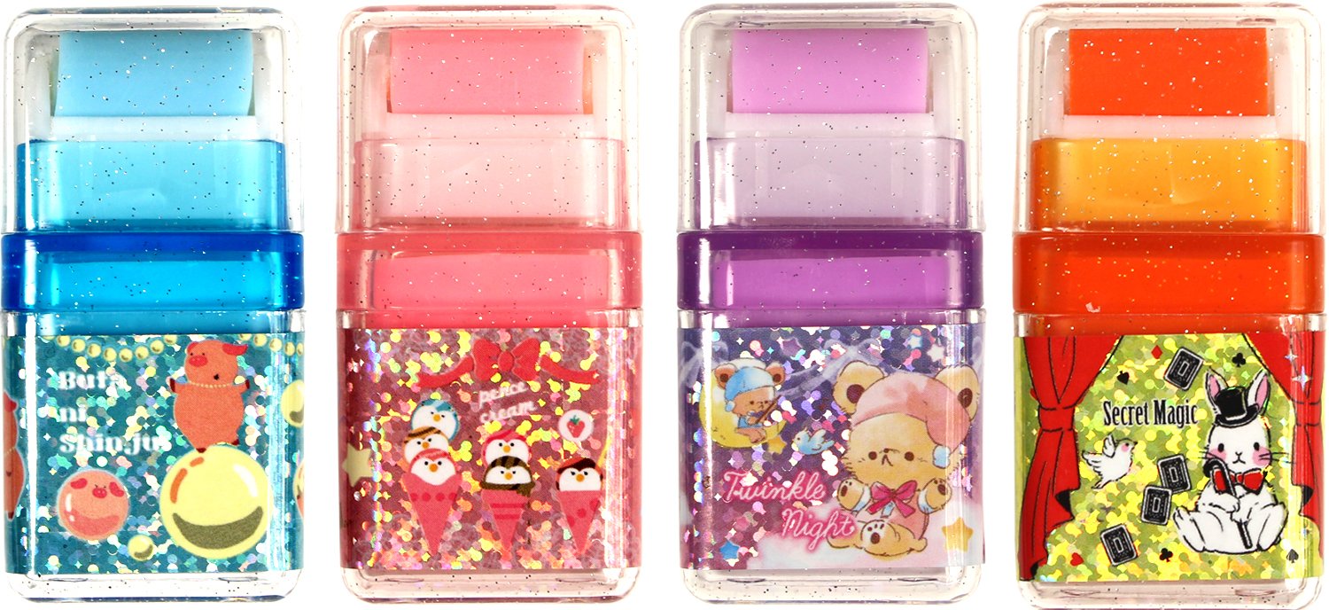 It is a set of scented roller eraser that entered into easy to use plastic case.