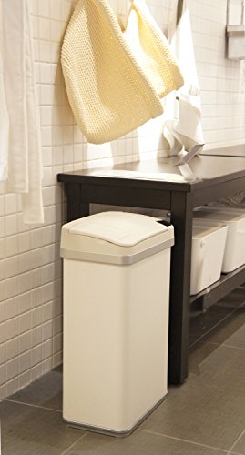 BEAUTIFUL and DURABLE – Elegant matte white steel can body and high-quality, silver-colored ABS plastic lid. Fingerprint-resistant and easy to clean.