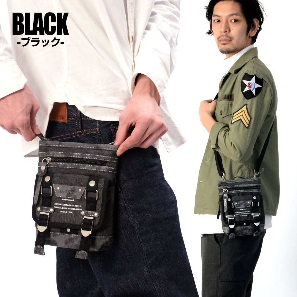 A shoulder strap is attached and it becomes also a 2way shoulder bag, it can be worn in the waist using a carabiner or a belt.