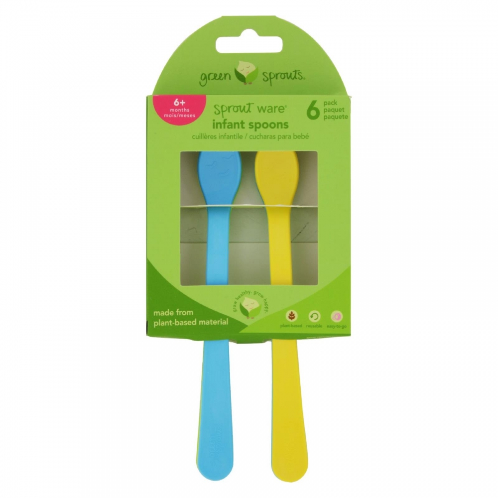Sprout Ware Infant Spoons are reusable and made from plant-based materials, making them good for the earth and safe for your baby! Long, curved handle and small tip makes infant feeding easy.