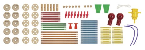 -. Feature : Creative and educational building set comes with 102 pieces so you can build the included designs, or create new designs of your own / Includes 48 rods, 20 spools, 8 connector clips, 2 flags, 10 end caps, 6 couplings, 2 tubes / All pieces, except green flags, are made of 100% real wood