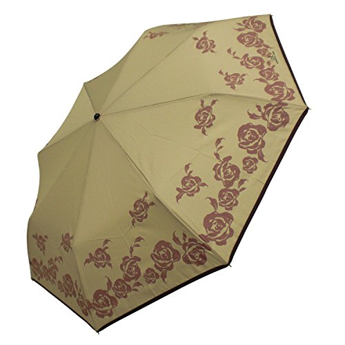 -. Title : ケンショウ アベ 折りたたみ傘 手開き ローズプリント パイピング ベージュ 全3色 8本骨 55cm 耐風傘 KA-532D