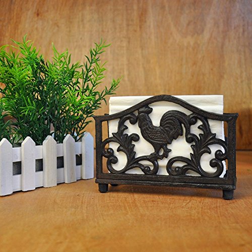 TJ003 Bestplus Cast Iron Vintage Tableware Napkin Holder with a Rooster, Antique Rust