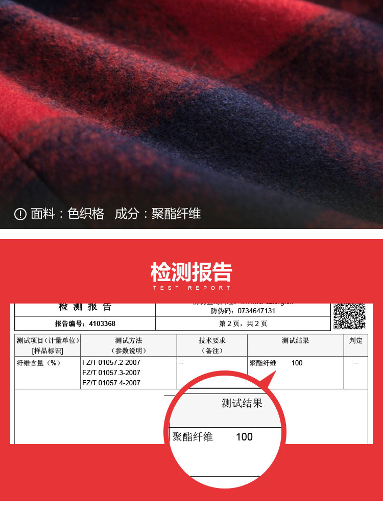 | 面 料:聚酯纤维里 料:聚酯纤维颜 色:红格 |