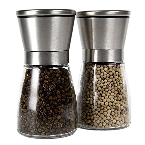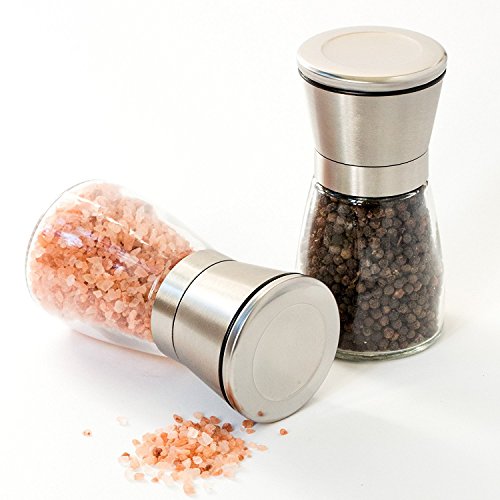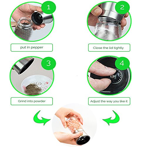 This professionally brushed stainless steel salt and pepper grinder mill provides a touch of elegance to every counter with exquisite modern look. And the kitchen tools are both functionally and elegantly designed. Tips: salt and pepper not included.