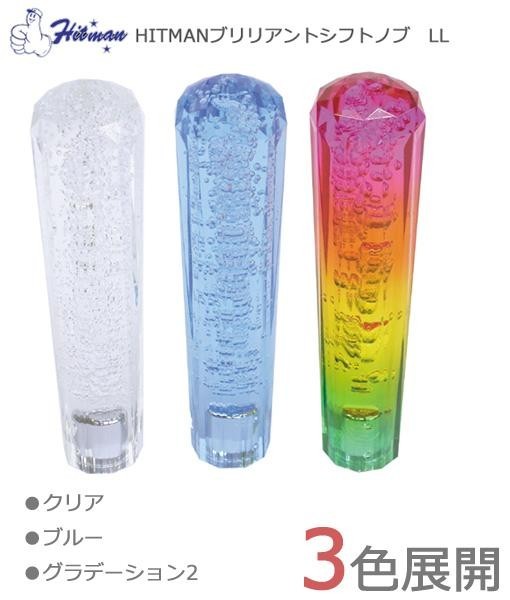 カーアクセサリーブランドHITMANから泡入りのダイヤカットクリスタルシフトノブが登場! 製造国:台湾 素材・材質:アクリル樹脂 商品サイズ:縦200×横49×奥行49mm 重量:335g 仕様:適合シャフトネジサイズ:10×1.25・12×1.25 付属品:10×1.25用変換アダプター ※サプライヤー直送品  ご注文後2~3営業日後の出荷となります【商品名】HITMAN ブリリアントシフトノブ LL クリアHM64-274CL