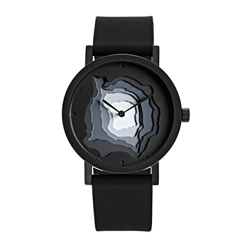 Inspired by a combination of landscape references - contour maps, topographical models, stone quarry excavations and agricultural terraces - this TERRA TIME BLACK watch has been conceived as an 'earthwork on your wrist;' where the sculptural qualities of light and shadow add poetic dimensions to the time-keeping services.Feature
