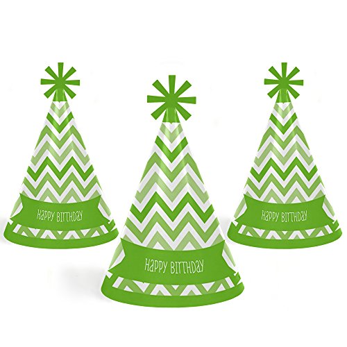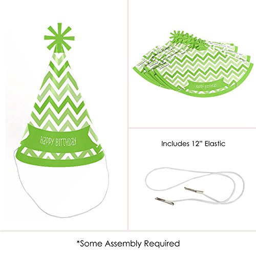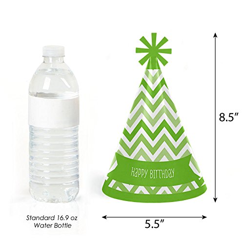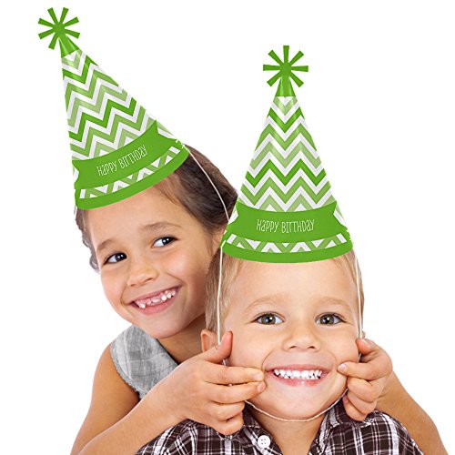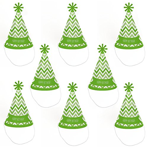 Chevron Green - Cone Happy Birthday Party Hats for Kids and Adults - Set of 8 (Standard Size)