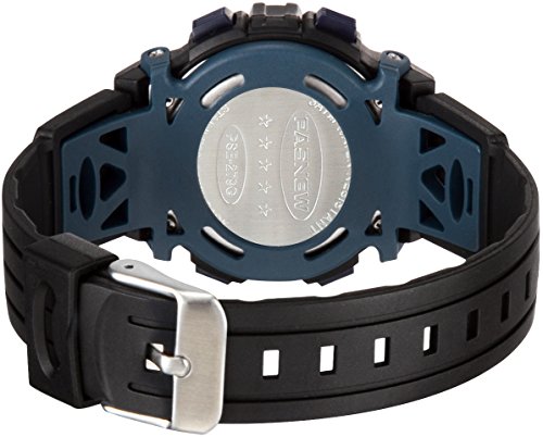 COOL WATCH DESIGN: black and blue bezel featuring with several clear windows, day, date, 12/24Hour time, second, alarm etc. are showing clearly and easy to read. Bright backlight makes the time visible in the dark