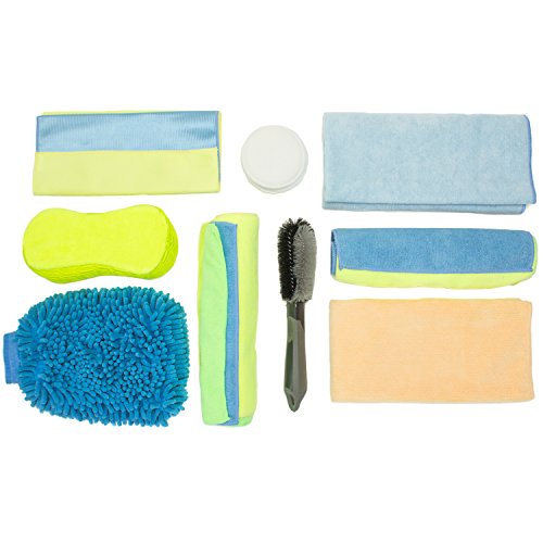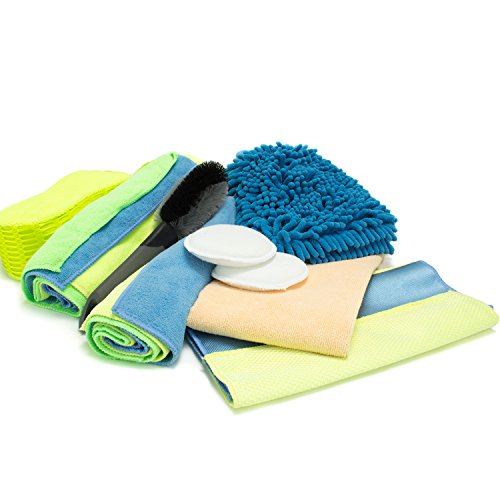 -. Feature : This kit includes: (1) Drying Towel, (1) Side Scrubber Sponge, (1) Ultra Mitt, (1) 2-Pack of 11" x 13" Glass Cleaning Cloths, (1) Combo Pack of Waxing Pads, (1) 18" x 24" Finishing Cloth, (2) 3-Packs of 12" x 16" Cleaning Cloths, and (1) Wheel Detailer. / Lint-free, streak-free clean-ups. Non-Abrasive: Won't scratch paint or clear coat. / Lint-free, streak-free cleaning & polishing; with a non-abrasive design that won't scratch surfaces, paints, stainless steel or clear coats / Absorbs eight times its weight in water, and dries in half the time of standard towels, wash cloths, hand towels & dusters / Can be used both wet or dry (waterless), with or without chemical detergent soaps or sprays; the microfibers are especially effective at trapping grease, dust, dirt and other particles, enabling you to wipe off fingerP.R.Ints and smudges with unmatched ease. / Great additional to any car wash kit to detail vehicles like sport & luxury cars, SUVs, boats, motorcycles, , bikes, bicycles & etc. / Reusable, long lasting & machine washable (with cold water and tumble dry) quality microfibers.
