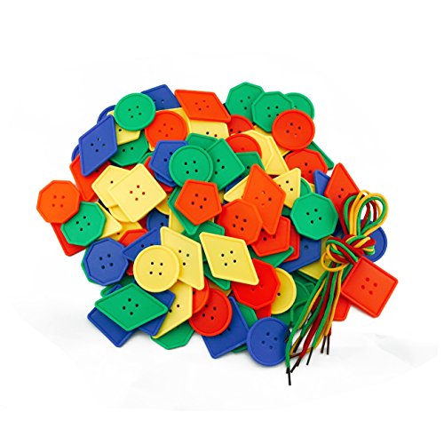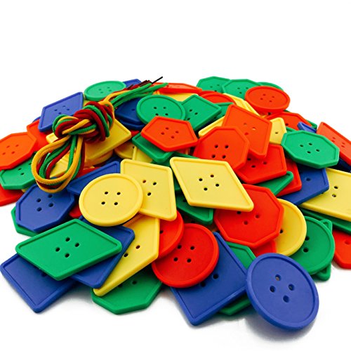 - Large plastic button lacing toy,Children can simply lace the large variety of buttons on the lace to make pretty jewelry, or they can sort or lace by color or button shape. Older children can create patterns with the colors and shapes.