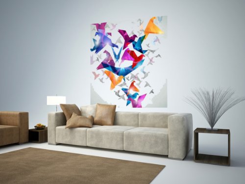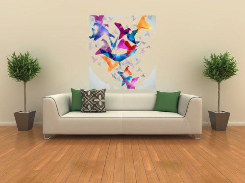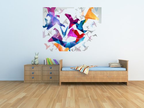 - Title : Animal Wall Decals Paper Flight Origami Birds Abstract Vector Illustration - 18 inches x 16 inches - Peel and Stick Removable Graphic