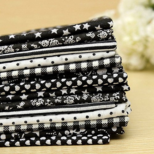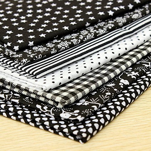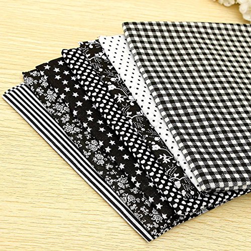 KINGSO 7PCS Cotton Fabric Bundles Quilting Sewing DIY Craft 19.7x19.7inch Black