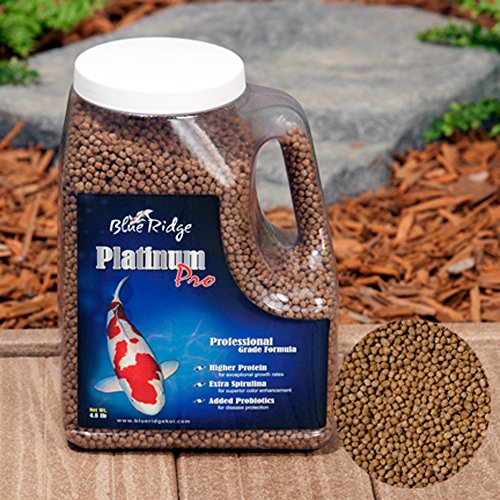 Blue Ridge Platinum Pro is a professional, fish meal-based diet formulated for discerning koi keepers that want the very best for their fish. This is a higher protein formula that will provide your koi with exceptional growth, nutrition and coloration. It contains everything needed to keep your fish in top show condition including top quality protein, carbohydrates and amino acids. It contains proven color enhancers Spirulina and Canthaxanthin for superior color enhancement. Also includes Primilac, a probiotic immune stimulant designed to protect koi from sickness and disease.