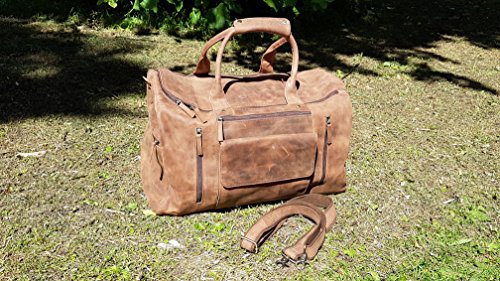 -. Brand : ANNUCREATIONS -. Color : BROWN -. Department : mens -. Feature : 2 YEAR GUARANTEE : We are so confident in our EXQUISIT CRAFTMANSHIP we would like to offer you a TWO Year Guarantee for our products. / PREMIUM MATERIALS : We Hand select only exceptional quality Buffalo leather, solid brass fittings and Well known YKK Zippers to create our exclusive, long-lasting items - true luxury goods. / MAXIMUM STORAGE SPACE ; 22" x 10" x 10" - Interior features One very roomy, beautiful satin lined compartment, zippered inside pocket, wallet pocket, cell phone pocket and two pen slots. keep your essentials safe on the move with multiply secure zippered outside pockets. Removable and adjustable shoulder strap provides comfortable, hassle-free carrying. / MEN & WOMEN: The ECOCRAFTWORLD Handcrafted Vintage Leather Duffel is designed for both men and women, so it can be universally great no matter who you are or what you're wearing. / SAVE 50% PLUS OF YOUR PURCHASE: Now you can finally get a GENUINE LEATHER duffel bag without breaking the bank and paying 300$ or more - the best leather duffel bag at the most economical price! -. Model : ECO2912A149 -. PackageQuantity : 1 -. ProductGroup : Apparel -. ProductTypeName : LAGE -. Size : large -. Title : 22" Genuine Leather Travel Bag Vintage Duffle Men's Gym Cabin Lage Holdall