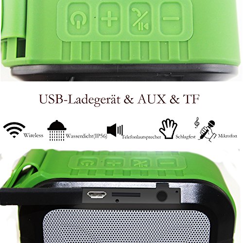 Outdoor & Indoor Lautsprecher:IP56 Schutzgrad: Staubdicht und Schutz vor zeitweiligem Untertauchen (bis zu 10 Minuten in maximal einem Meter Wassertiefe) bietet, So kannst Du dank hochster Qualitat in der Dusche und unterwegs bequem Deiner Musik lauschen, egal ob Du spazieren, zum Sport, ins Schwimmbad, zum Strand, Grillen, Campen, in den Garten, auf Reisen oder Zuhause bist.