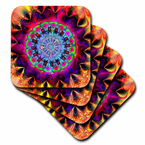 3dRose cst_118502_1 Psychedelic Funky Bright Abstracl Fractal Kaliedescope Digital Artwork Soft Coasters, Set of 4