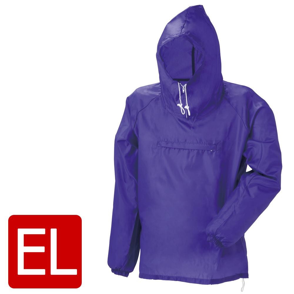 旅行、スポーツ観戦、イベントに最適なはっ水加工のヤッケです。フードの取り外しはできません。
