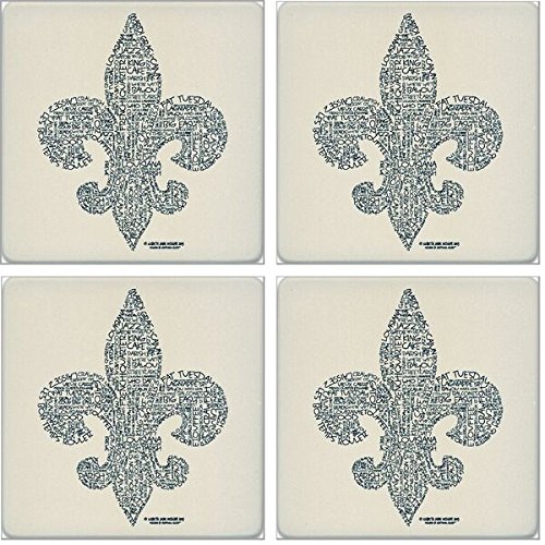CoasterStone Absorbent Coasters, Relevant Words Fleur de Lis (Set of 4), 4-1/4", Multicolor