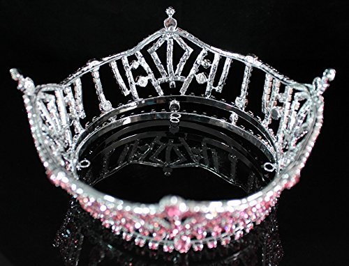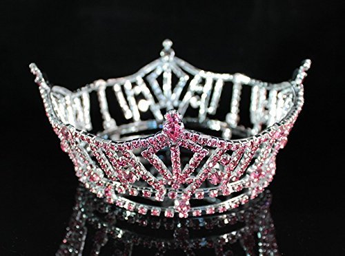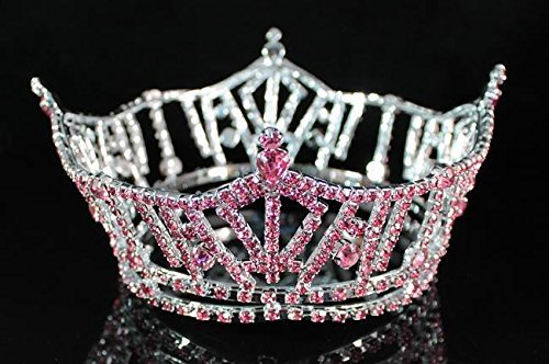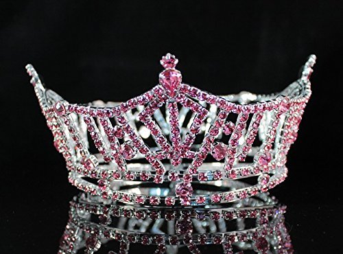 You are looking at stunning hard to find full crown. Sparkling Pink Genuine Austrian rhinestones are set in a beautiful silver-plated setting. There are loops interior to help security. All rhinestones sparkle a lot and are prong set by hands! This crown is full of sparkle! It is perfect for pageant, prom or any special occasions. Thanks for looking!