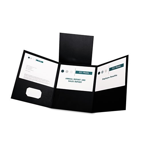 Oxford Tri-Fold Folder w/3 Pockets, Holds 150 Letter-Size Sheets, Black