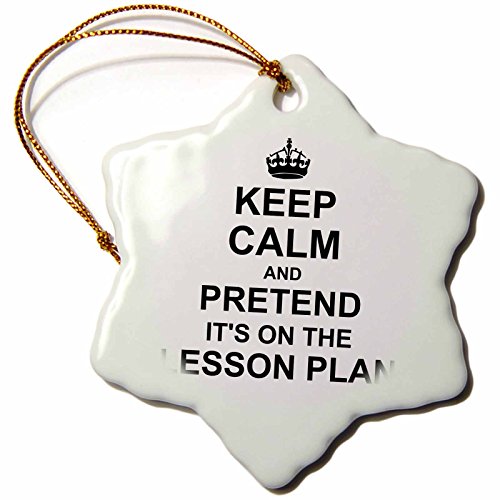 3dRose orn_157780_1 Keep Calm and Pretend Its on The Lesson Plan Funny Teacher Gifts Teaching Humor Porcelain Snowflake Ornament, 3-Inch